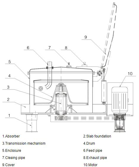 The centrifuges are all filtering equipment with closed top discharge and intermittent operation. The material is added to the rotating drum from the feed tube on the closed casing. Under the action of the centrifugal force field, the liquid phase passes through the filter medium and is discharged out of the machine. It has the characteristics of stable operation, simple operation, and the feeding, washing, and dehydration are carried out in a closed state.